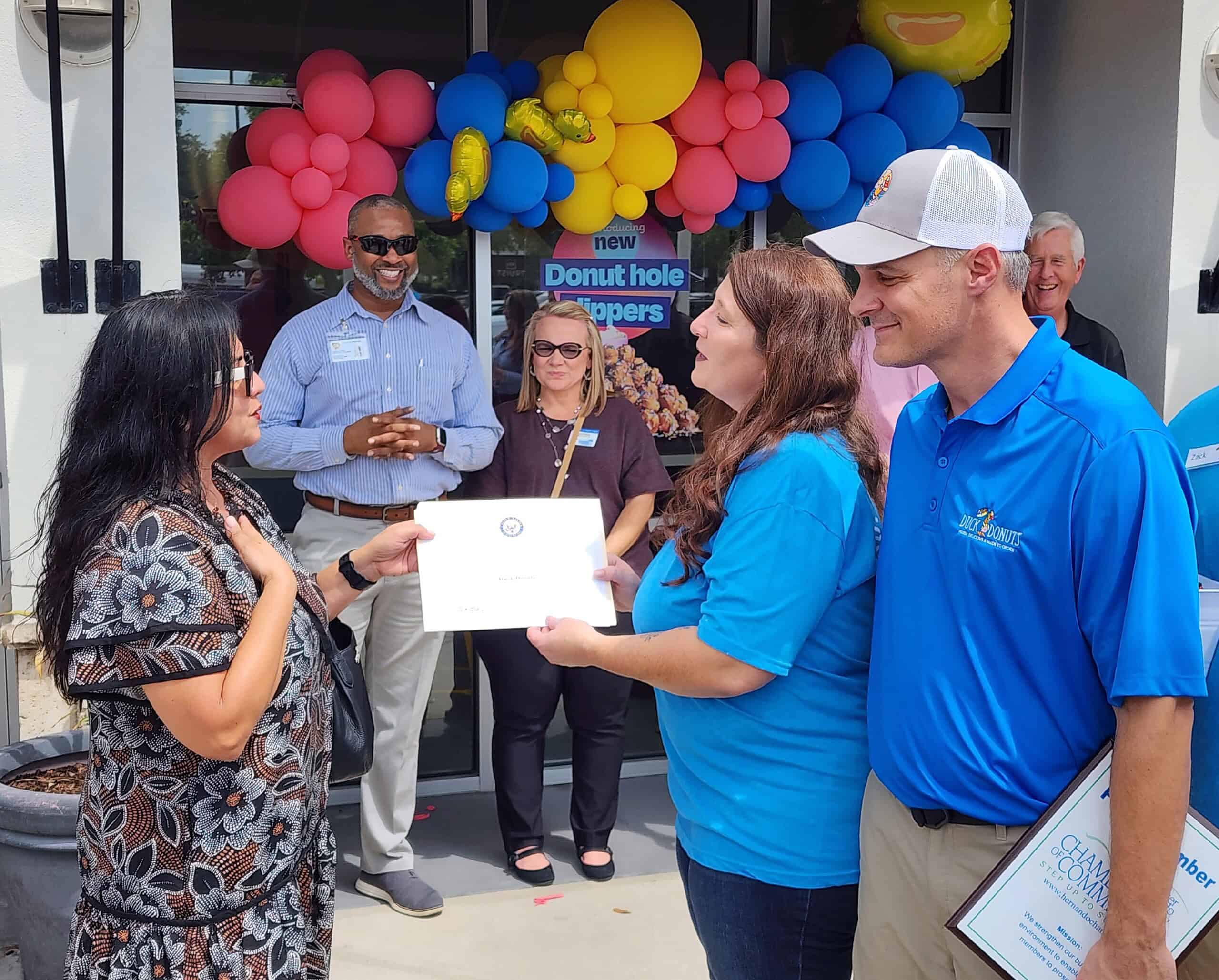 The Greater Hernando County Chamber of Commerce officially welcomed Duck Donuts to Spring Hill, Florida, with a ribbon-cutting ceremony this past Wednesday. Franchisee Christina Putnam, alongside her family and community leaders, celebrated the grand opening at the new location, 13105 Cortez Blvd., right next to BJ’s Wholesale.